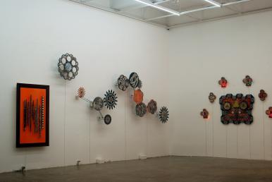 모이라이(Moirai), wood, stainless, gouache, dye, pigment, 761x761x70mm, 2017