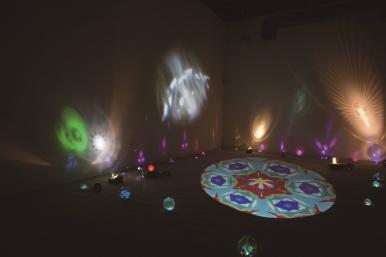 미래가 된 산수, 비디오설치, 컬러, 사운드(비디오 프로젝터 10대, 브라이트사인, 스피커, 앰프, 바위 오브제, 샤 스크린, 거울), 5분 30초, 이이남 스튜디오