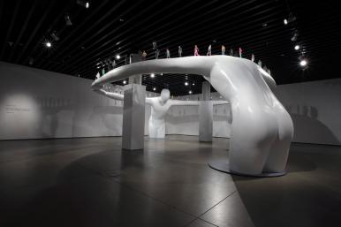 Circling Complex, 사이클러 인형 약 200개, 전력공급트랙, 혼합재료 320(∅)×20(h)cm / 2010