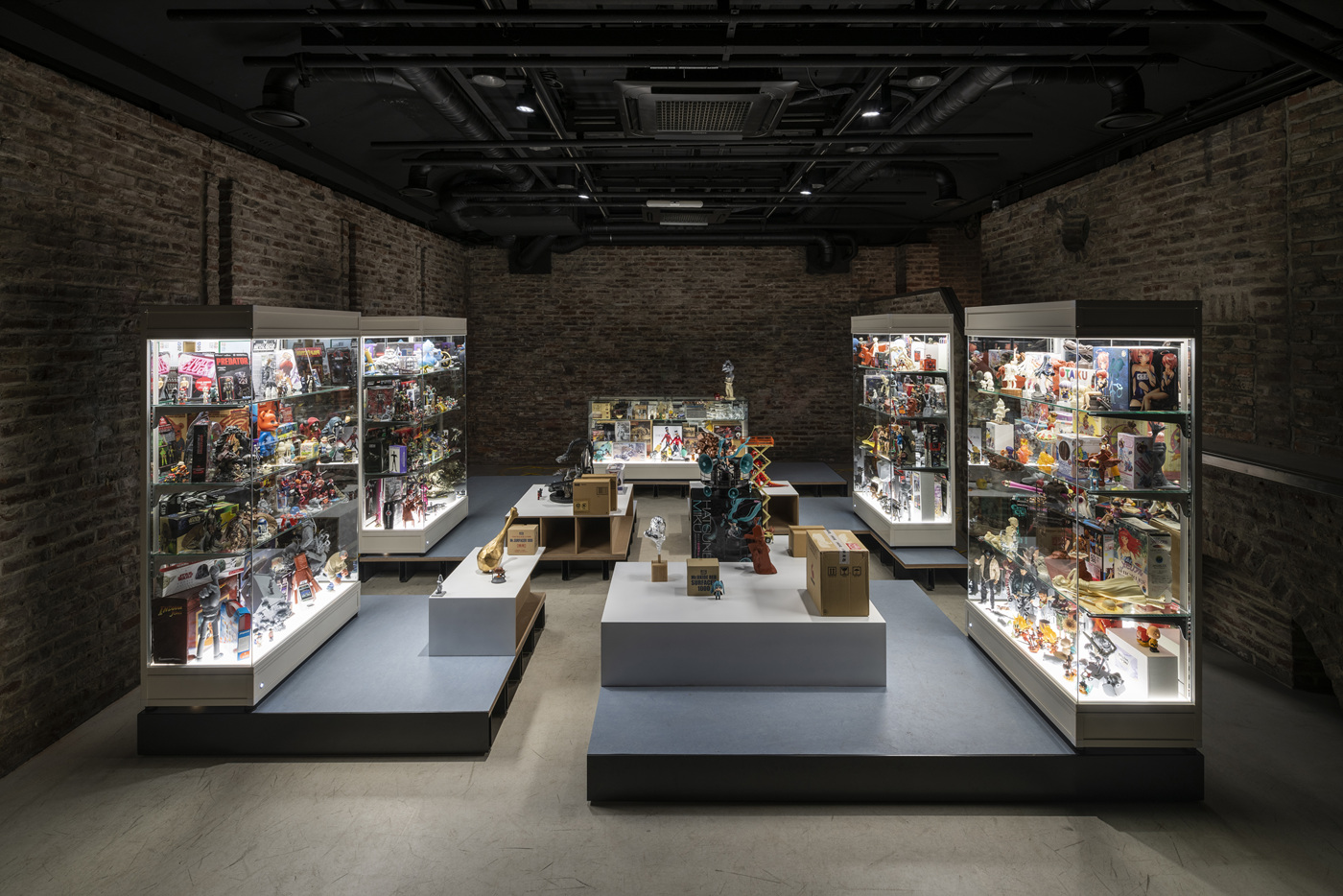 끽태점 (Kitsutaiten), 2019, figure, small sculpture, glass showcase, hardware floor box, LED light, 200x300x100cm, 200x195x270cm, 200x205x190cm, 200x155x130cm, 200x245x180cm ⓒ 2019 Sunpil Don