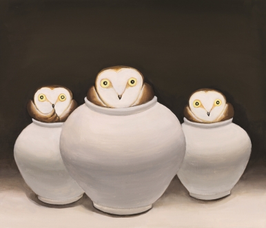 달 항아리와 부엉이, 53x45cm, acrylic, 2023