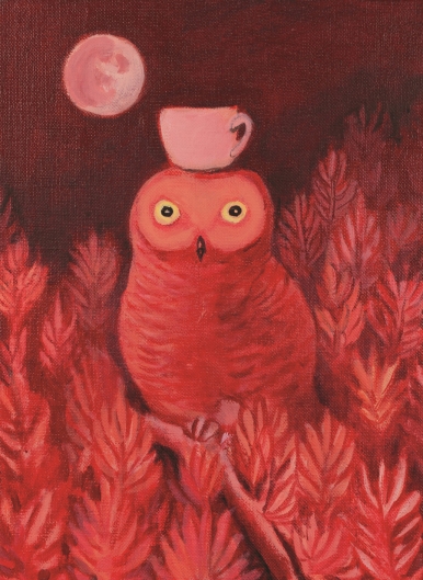 커피잔을 든 부엉이, acrylic on canvas, 33x24cm, 2011