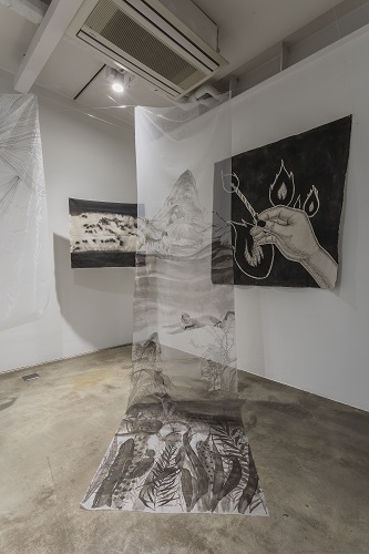 낯선 무늬, 2019 실크와 천에 먹, 가변크기