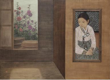 결-자미화, 91x122cm, 나무에 단청기법, 2017