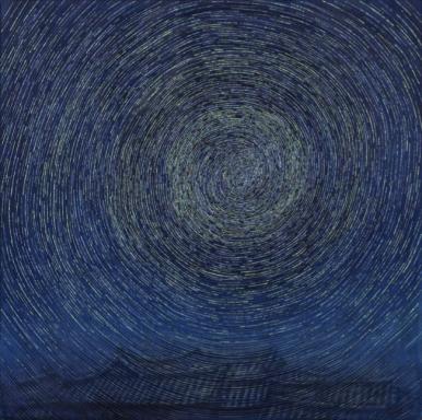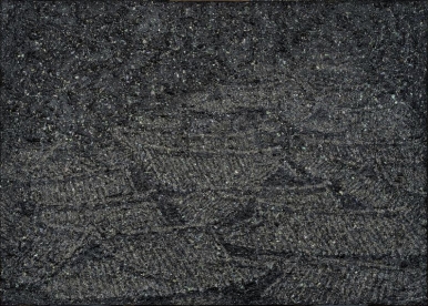 우주 宇宙, 100x140cm, Wood ash and mother of pearl on canvas, 2023