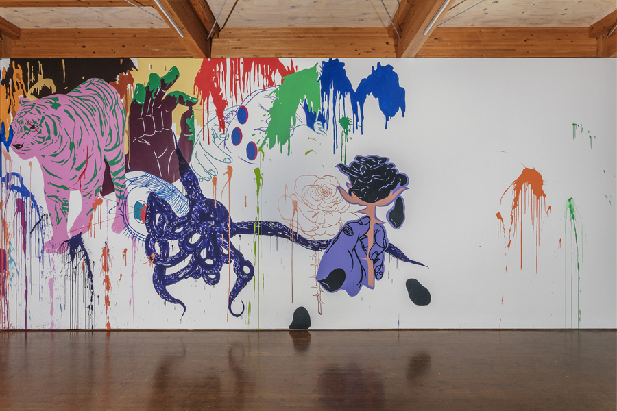 기묘한 살갗5, 벽에 과슈,잉크,아크릴, 310x1,231cm(벽화), 2019 (기묘한 살갗 5의 일부분)