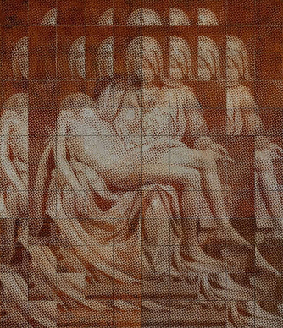 피에타, 2020. 철판 위에 실크 스크린, 부식, 210 x 180 cm