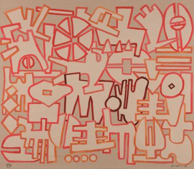 구성 Composition, 1960, 캔버스에 종이 콜라주, 채색, 133x80cm, 1965 제8회 상파울루 비엔날레 브로셔 수록작