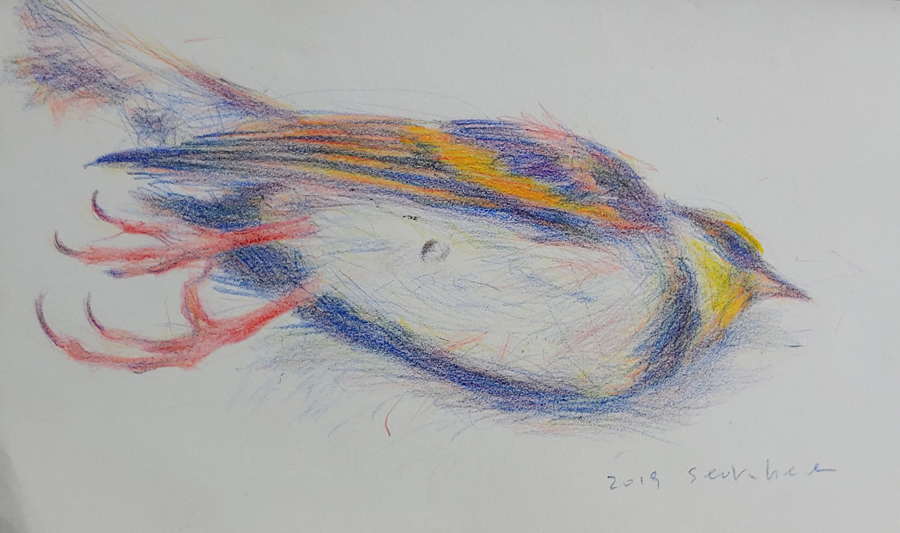 새를 보내다, 종이 위에 혼합재료_12x19cm_2019