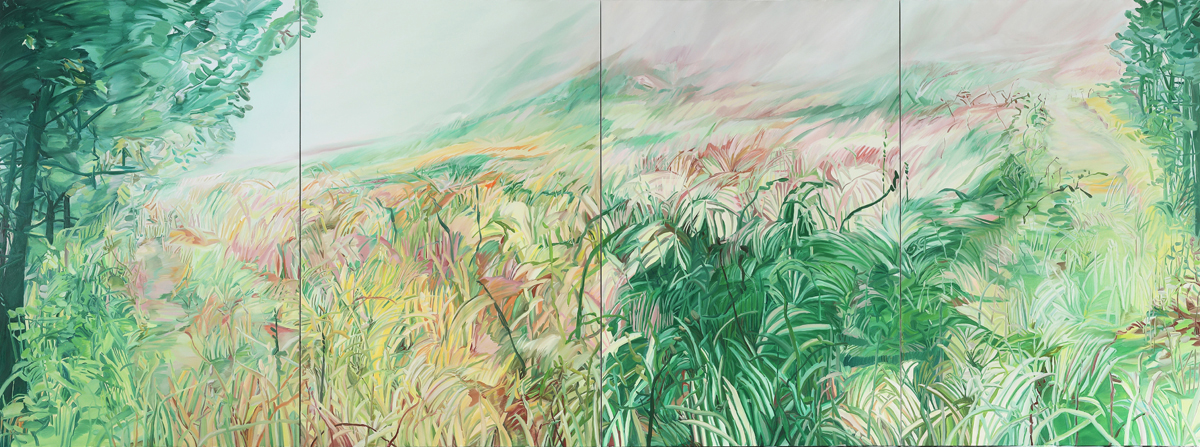 Green foggy, 2020, 193.9cm x 521.2cm, 0.9cm x 31.9cm, 캔버스에 유채 / 자료제공: 이유진갤러리
