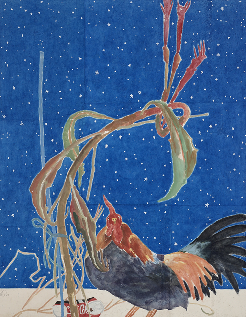 별을 보여드립니다.맨드라미, 90x118cm, 장지에먹 분채, 2020