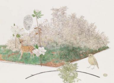 미미경微美景, 53 x 70.5cm, 비단에 수묵채색, 2018