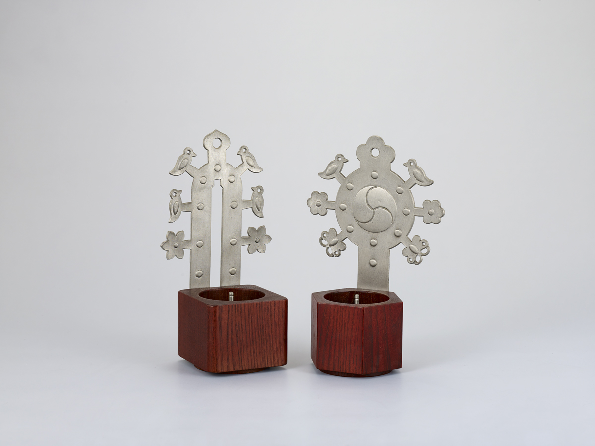 촛대, 1975년 디자인/2000년대, 스테인리스, 나무, 9x9x21x(2) cm, 작가소장