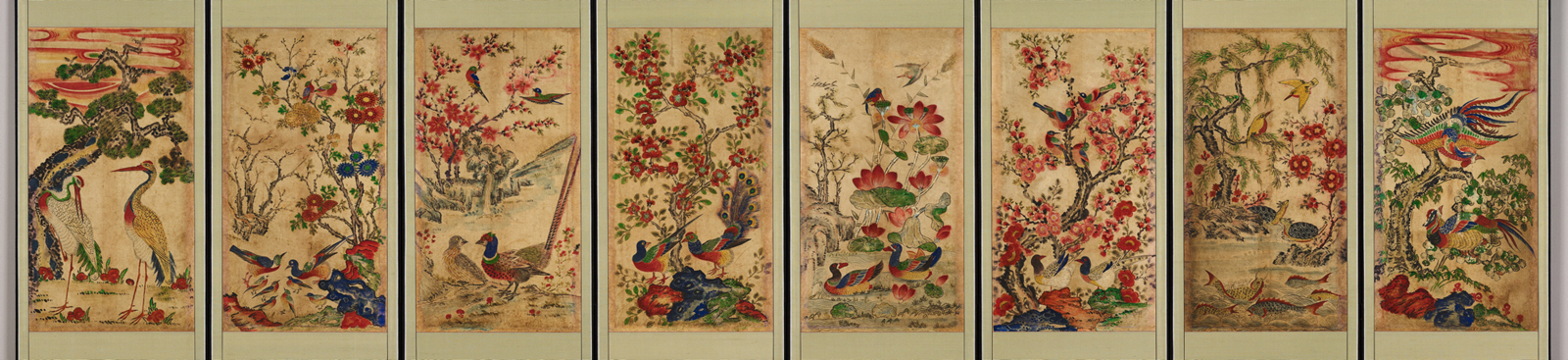 화조도, 종이에 채색, 조선말기, 102x38x(8)cm, 국립중앙박물관 소장(故 유강열 기증)