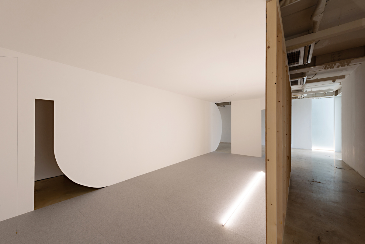 Light Drawing (room) #1, 2024. Chiffon, LED light, rope wire, fishing wire, copper wire, turnbuckle, Dimensions variable. (사진: 김경태)