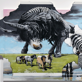 Instant Landscape-bird #2, Artificial fur and charcoal on canvas, 130x324cm, 2009
