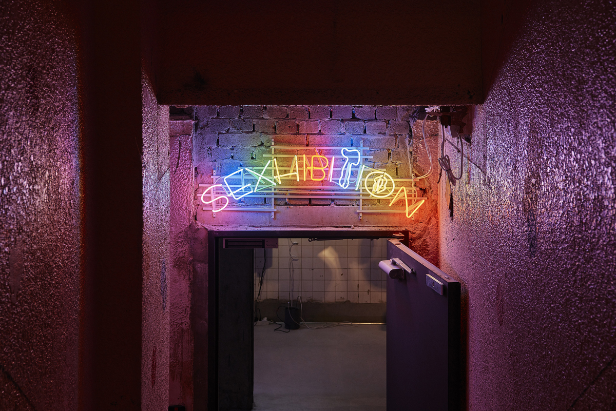 Sexhibition, 2018, 네온, 65ⅹ95㎝, <Mother>, 2017, 혼합재료, 가변설치