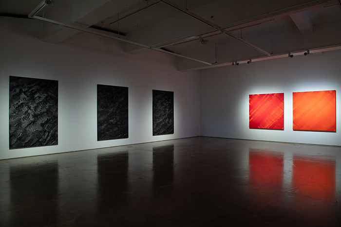 천 번의 숨, mixed media on canvas, 130.3×193.9cm 3ea, 2021, 천 번의 숨, acrylic on canvas, 150×150cm 2ea, 2020
