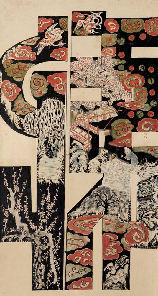 백수백복도(百壽百福圖), 1894, 종이에 채색, 각 90.5×31.5cm (10폭)