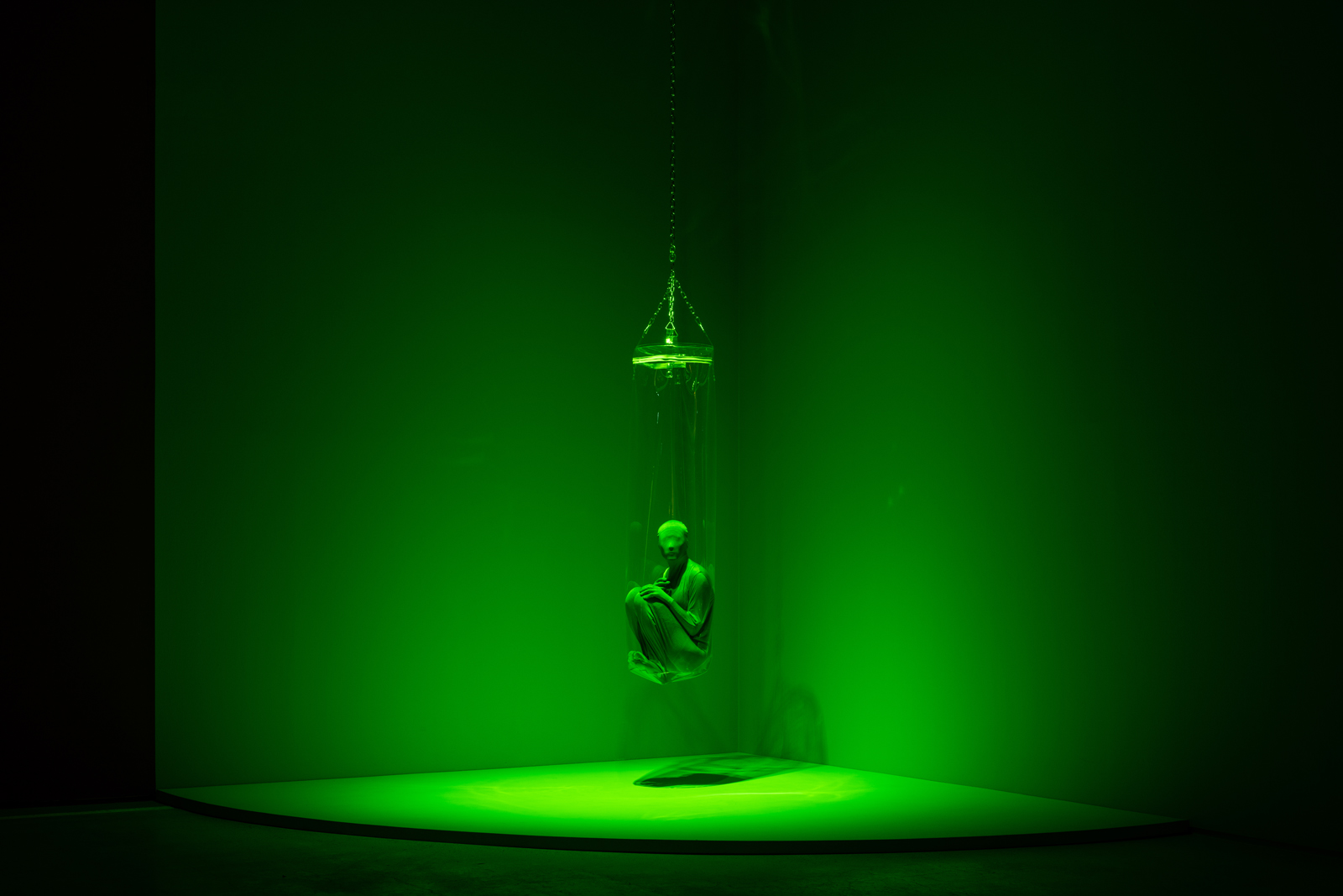 Chroma Key Green, 2021, 레진, 투명우레탄비닐, 크로마키 슈트, 160×45×45cm, 사진 홍철기 Photography Hong Cheolki