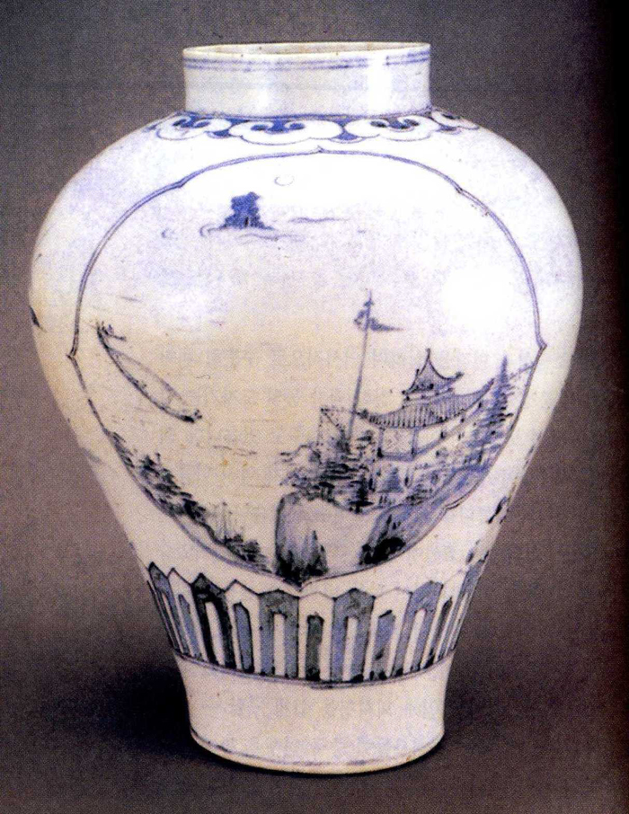 청화백자 중에는 전면에 청채를 한 후, 백자유를 입힌 예들도 다량 제작되었다.