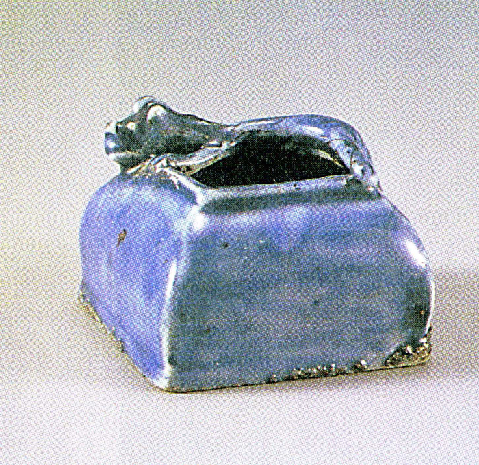 조선후기에는 다양한 형태의 연적이 만들어지는데, 이 작품은 구부러진 가지를 받침삼아 잎사귀가 붙은 복숭아를 표현한 것으로 신선들이 먹었다는 ‘천도(天桃)’를 상징한다.