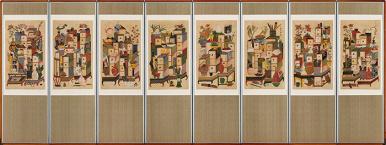 책가도 8폭 병풍, 조선, 종이에 채색, 각50×86.5cm(8)