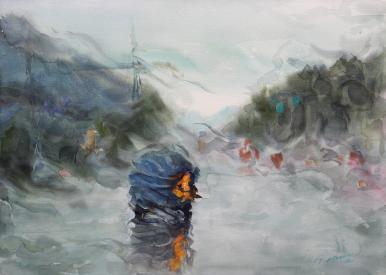 산내 가는 길 (Rain-road), 2017, 종이에 수채, 97.8×67.6 cm