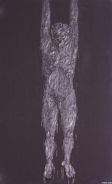 매달린 생각, 캠바스위에 흑인, 245x145cm, 2011