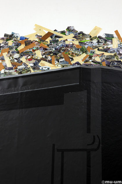 Dumpster, real estate magazine, contact paper, masking tape, graphic tape, 210x427cm, 2010