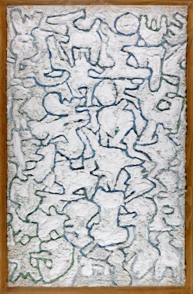 구성, 1971 솜과 종이 꼴라주, 194x125cm 이응노미술관 소장