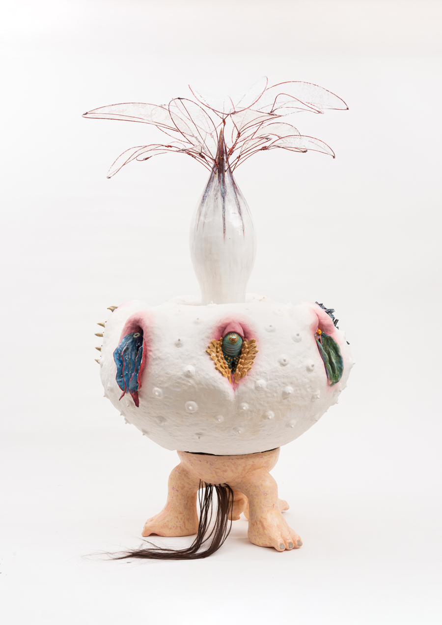 Puss-it, 도자, 철사, 레이스, 가발, 큐빅, 핸드빌딩, 80cm x 80cm x 130cm, 2022