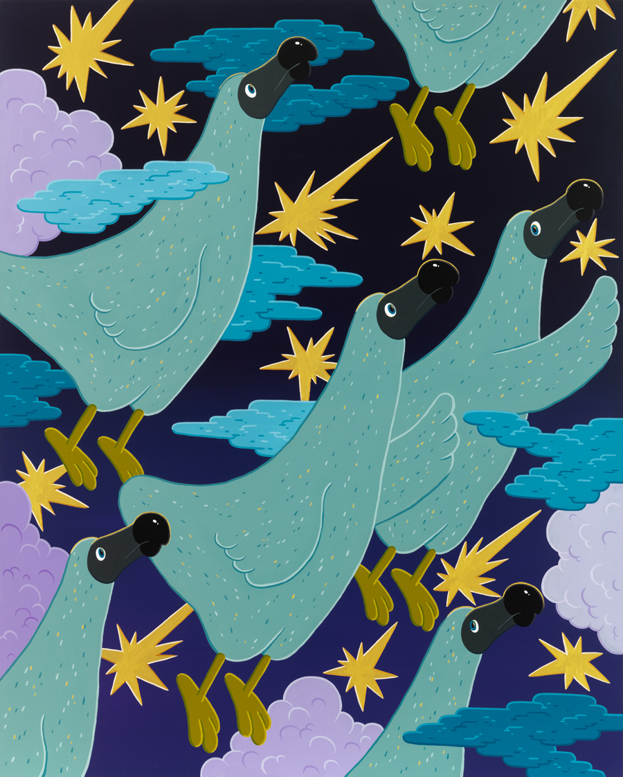 Dodo in flamingo, 145x111cm, gouache on canvans, 2018