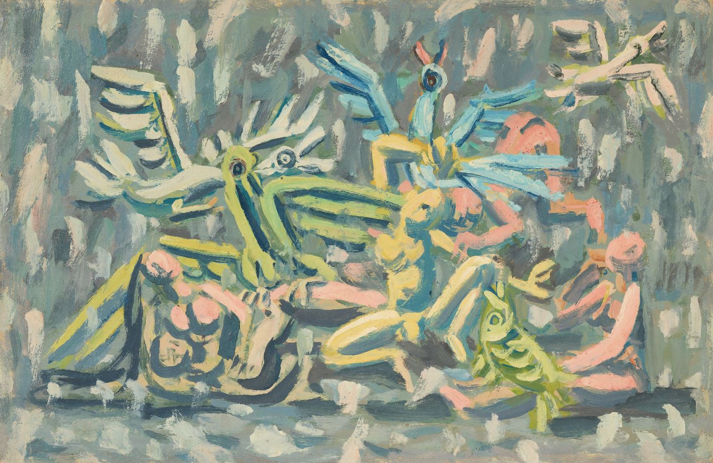 상상의 동물과 사람들, 1940, 종이에 먹지그림, 채색, 9×14cm. 국립현대미술관 이건희컬렉션