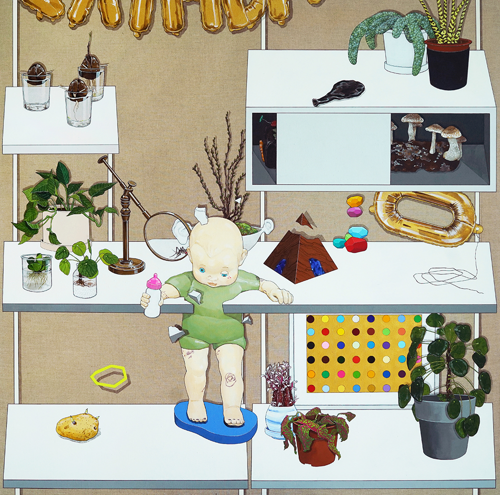 각자의 생애주기(“Still” Life), 2025, Acrylic on linen, 100x100cm