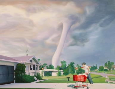 난폭해 보이는 소를 피하고 있는 사람들의 표정과 모습에서 느껴지는 긴장감과는 대조적으로 화면 중앙에 서 있는 여인의 표정에서 우리는 ‘무관심’을 읽을 수 있다. 이는 조성훈 작업 전반에 걸쳐 펼쳐져 있는 주제이기도 하다. 배가 침몰하고 있는데 서핑을 즐긴다, 산사태 앞에서 골프를 친다, 집체만한 고릴라를 옆에 두고 한가롭게 산을 배경으로 사진 촬영을 한다. 이러한 극단적인 화면 연출을 통해 작가는 무관심에 대해 이야기하고 있다.