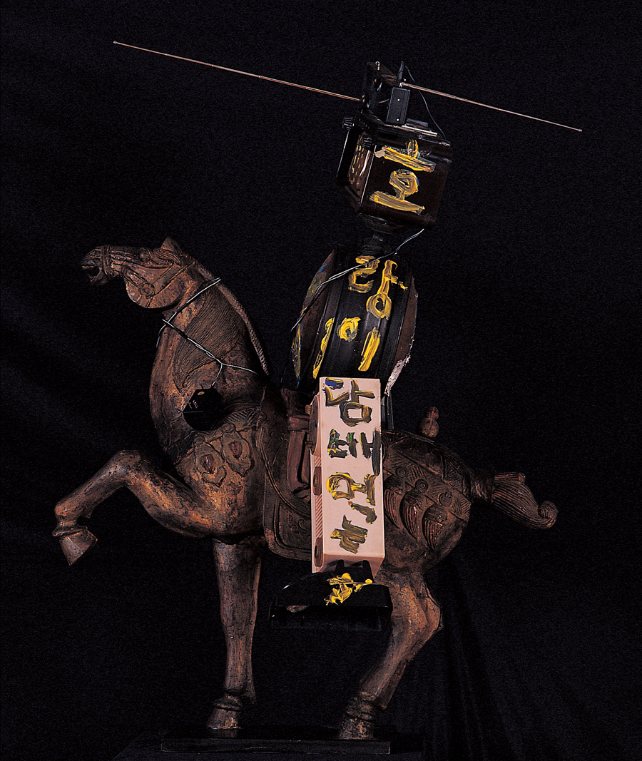 김유신, 1992, 나무, TV, 유채, 149x114x90cm. 부산시립미술관 소장.