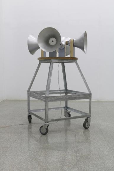 Stabilized Instability-고립주의의 환상 속에서, 60X60X135cm, 음향 스피커, 아연도금강, 우레탄&