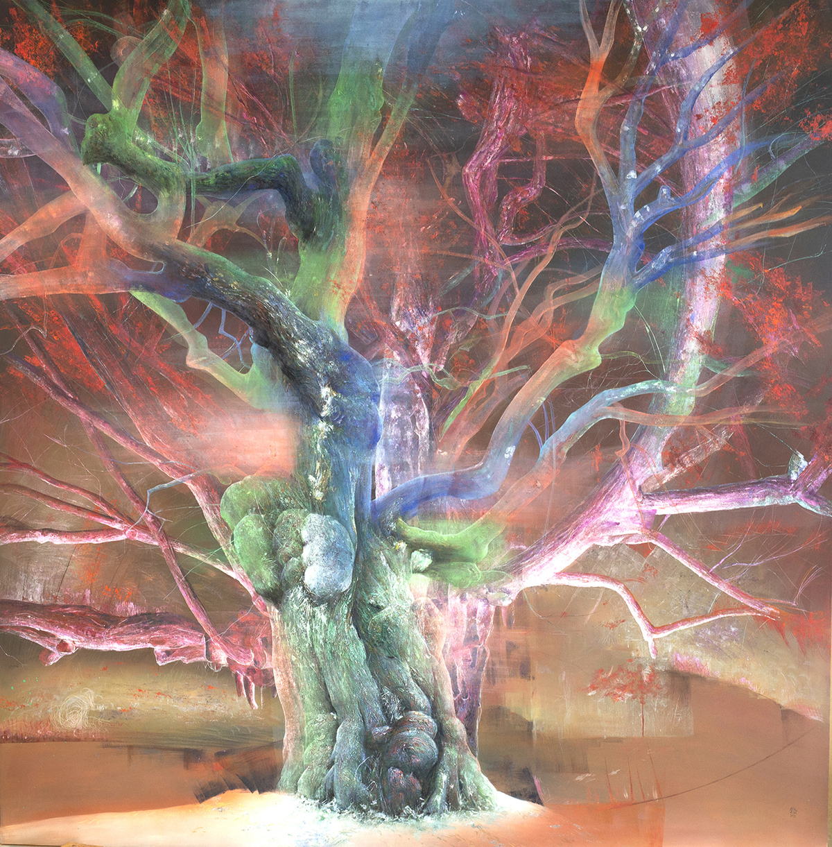 겨울나무,, 245x245cm캔퍼스위에혼합재료,2021년작,