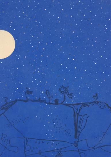 느린 풍경-동산에 올라, 장지에 먹, 분채, 109×77cm, 2017