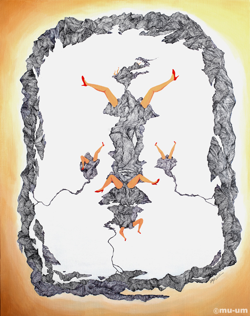 사막의 풍경, Black Pen, Acrylic Color on Canvas, 73x91cm, 2010