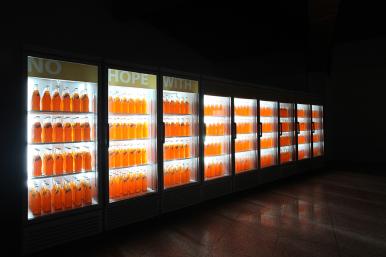 신자유주의 빛은 없다 Scene-1, 냉장고,오렌지음료,조명,가변설치_2016
