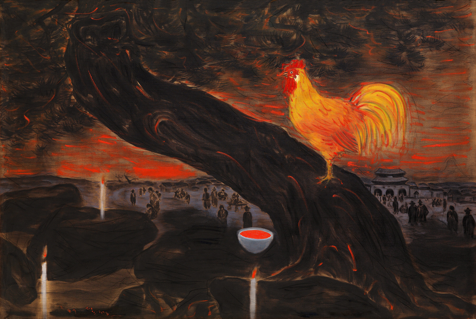 새벽-붉게 물든 정화수 Dawn-Purified Water Dyed Red, 1987, 130.3x194cm, oil on canvas