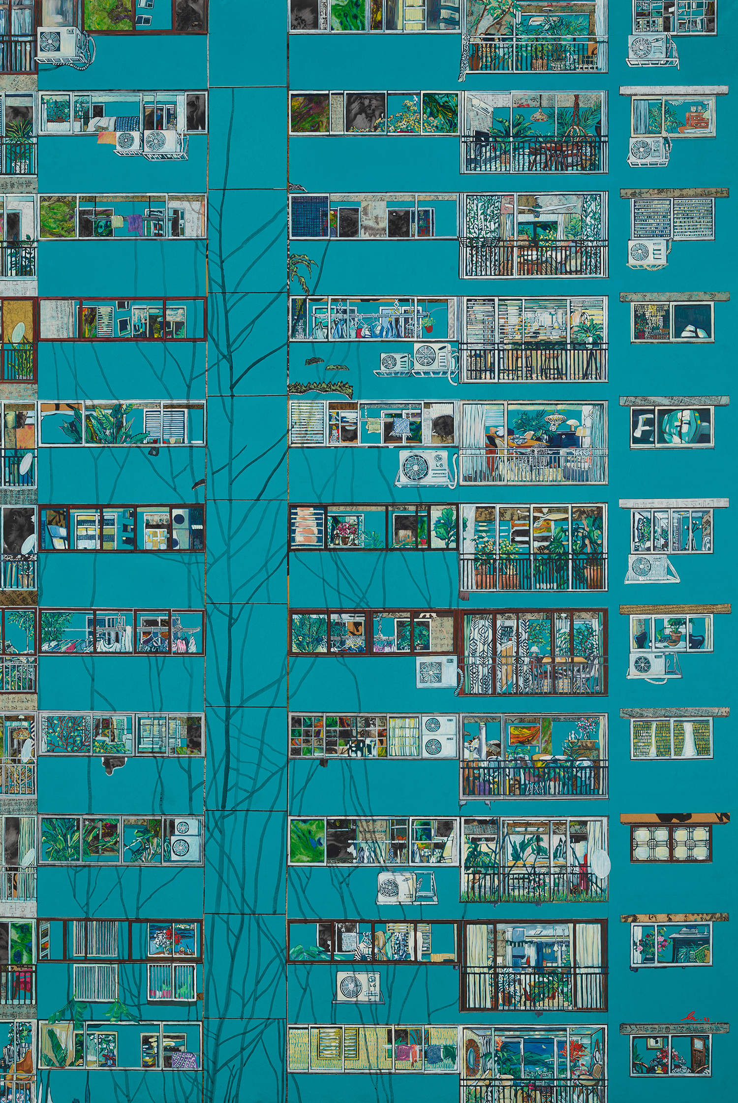개인의 방-덧댄 기억, 한지에 고서 콜라주, 수묵, 아크릴, 176x136cm, 2022