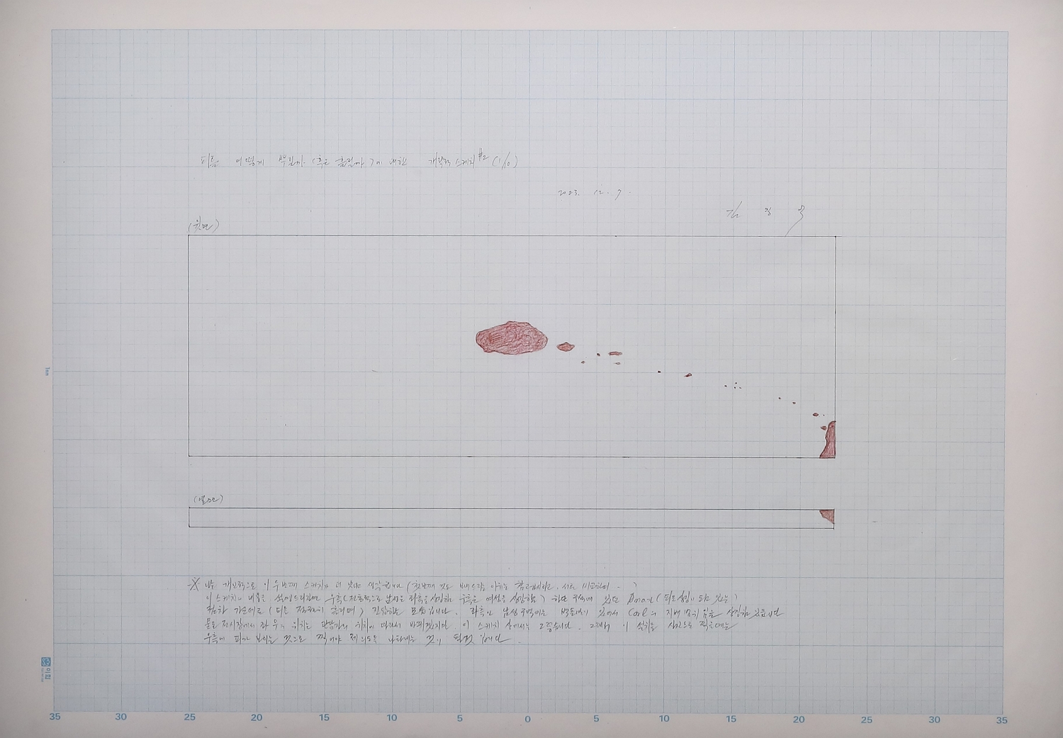 제목은 아직 고민중인 설치물의 계획도, 2023, 방안지에 색연필, 펜, 78.5×54cm
