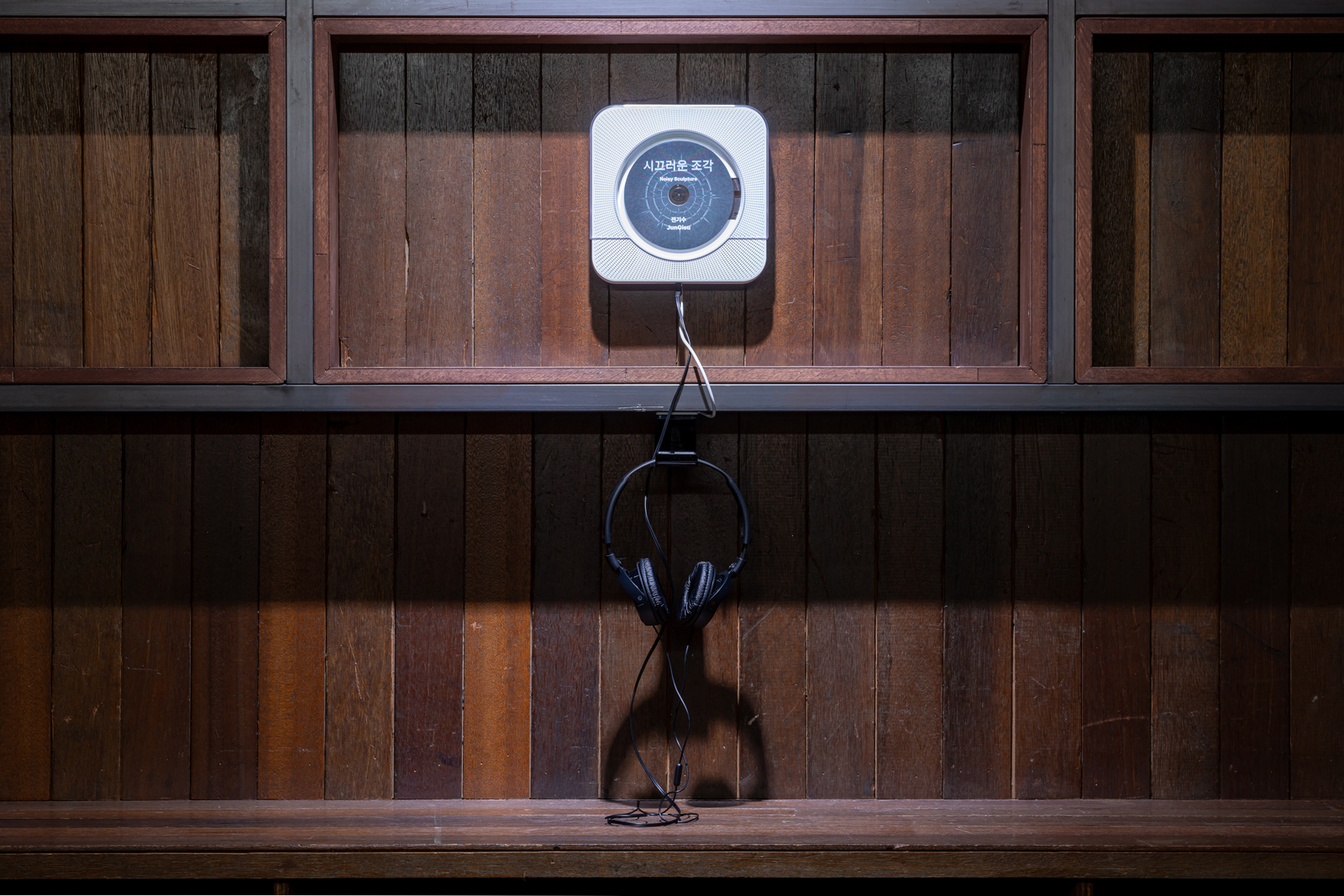 스푸닝, 2023, two different playlists coming out of two different headphones,dimensions variable (사진제공_ 아트센터 예술의 시간)