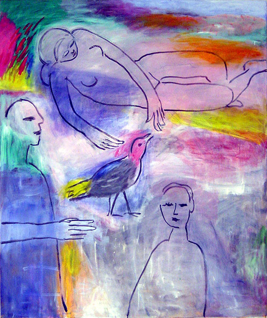 새와 놀다, Acrlic on canvas, 183×152cm, 1996