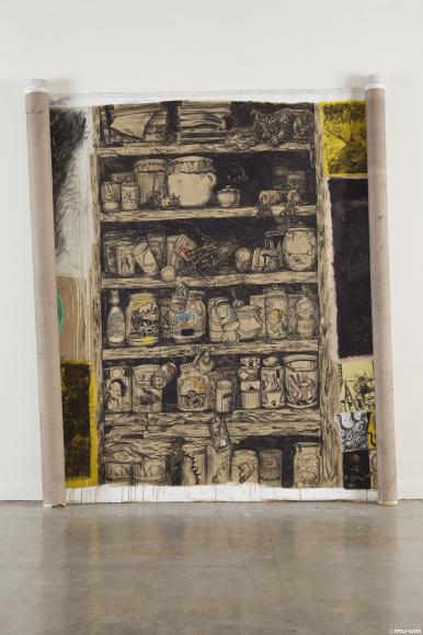 Golden Soup(인사미술공간 1층 설치 전경), 캔버스 위 오일파스텔과 아크릴, 150x210cm, 2013