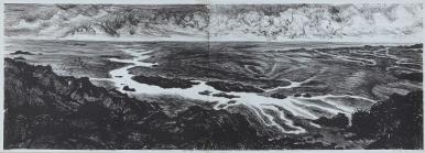 모악별곡, 280×700cm, 한지에 먹, 호분, 2004