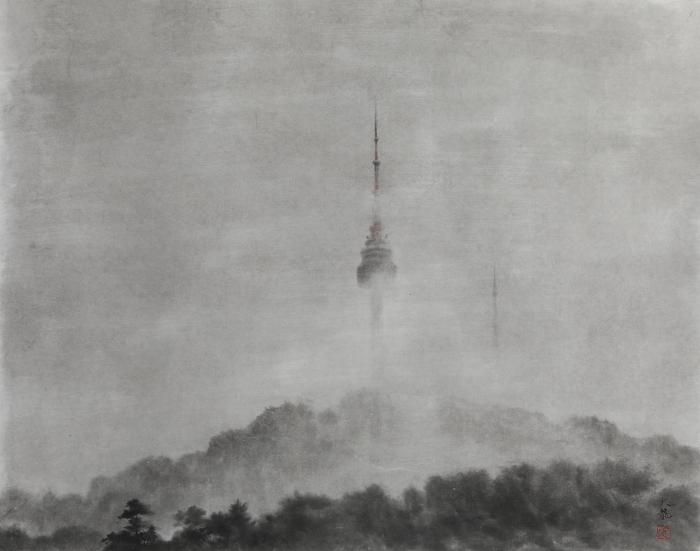 남산제색(南山霽色), 한지에 수묵, 57x72cm, 2024
